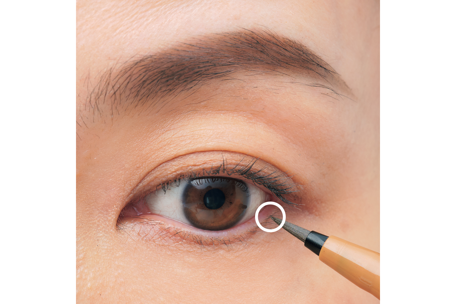 目頭や目尻のキワまでラインを入れると不自然な仕上がりに。まつ毛とまつ毛の隙間を埋めるイメージで。