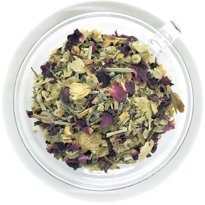 寝る1時間前にハーブティーを飲みながら、仕事のスケジュールを確認。カモミールやラベンダー、レモングラスなどの香りが心地よく眠りを誘います。ハーブティー[90g/1カ月分]¥4,290(NeRoLi herb)
