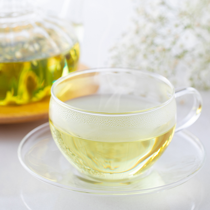 カモミールティーや麦茶、黒豆茶などノンカフェインのお茶で体を温めてから就寝します。