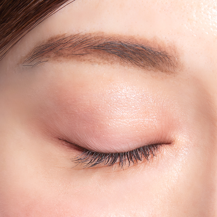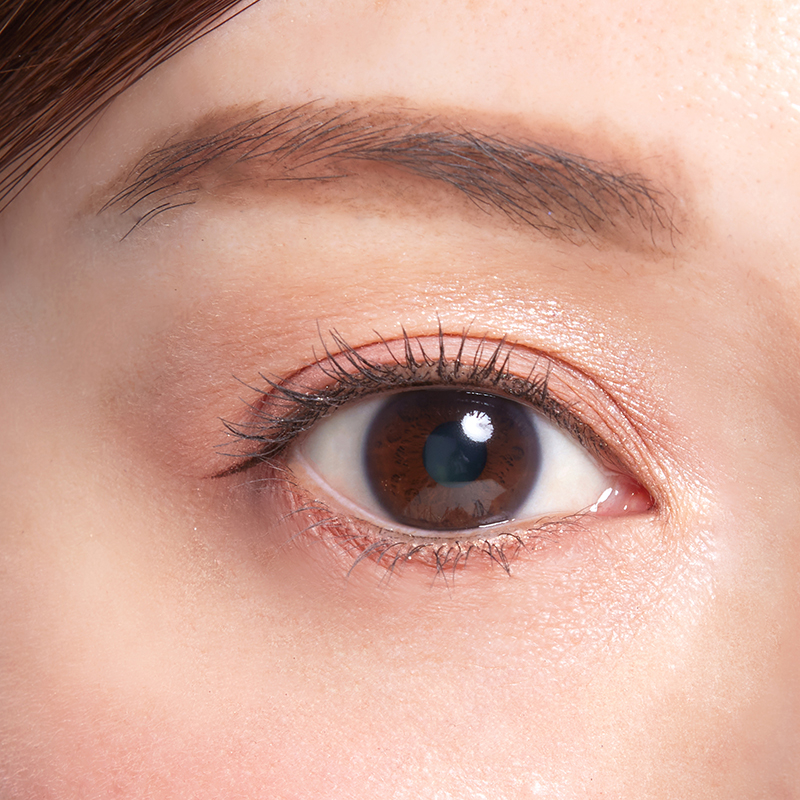 年齢問わず愛される甘めカラー&シアーマットなアイパレットでまぶたを彩ったら、ブラウンアイライナーとブラックマスカラでキリッとしめてバランスをとりましょう。