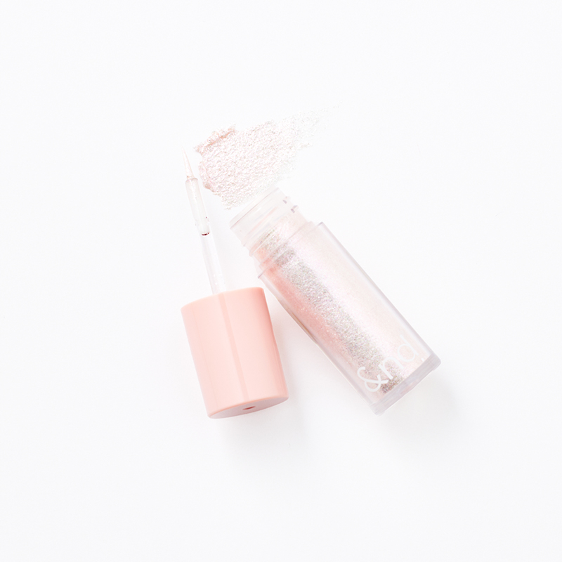 ピンクやパープルを中心に青みがあるカラーがイン。ポイントで白く輝かせたり、指で広げるとパープルっぽく輝きます。アンドバイロムアンド グラッシーアイグリッター PK01 チェリーブロッサム ¥750(韓国高麗人蔘社)