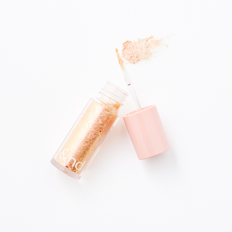 ゴールドを中心に、グリーン、ピンク、ブルーのグリッターをぎっしりと詰め込み、大粒のシルバーがグッと目元の存在感を引き上げる。アンドバイロムアンド グラッシーアイグリッター OR01 オレンジブロッサム ¥750(韓韓国高麗人蔘社)