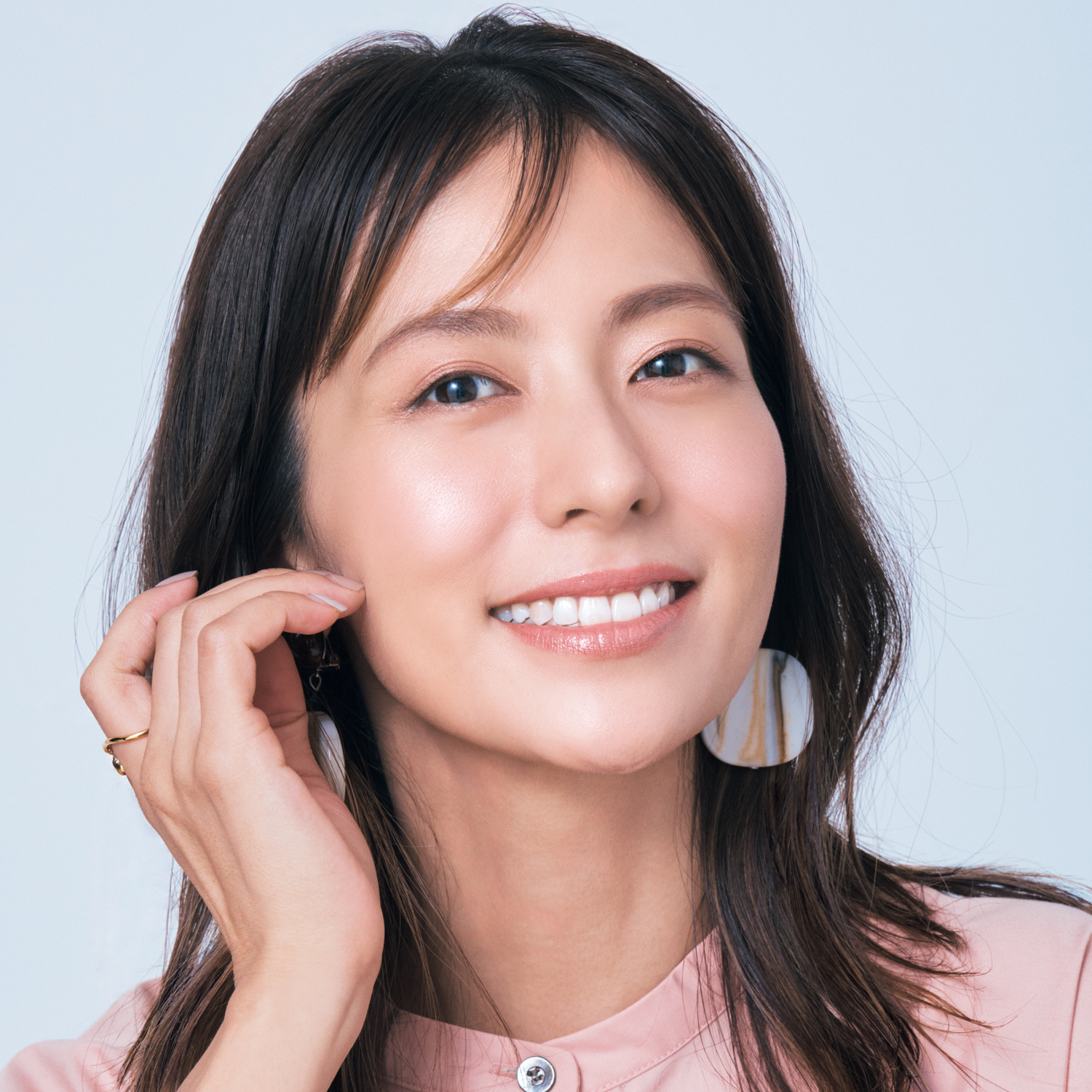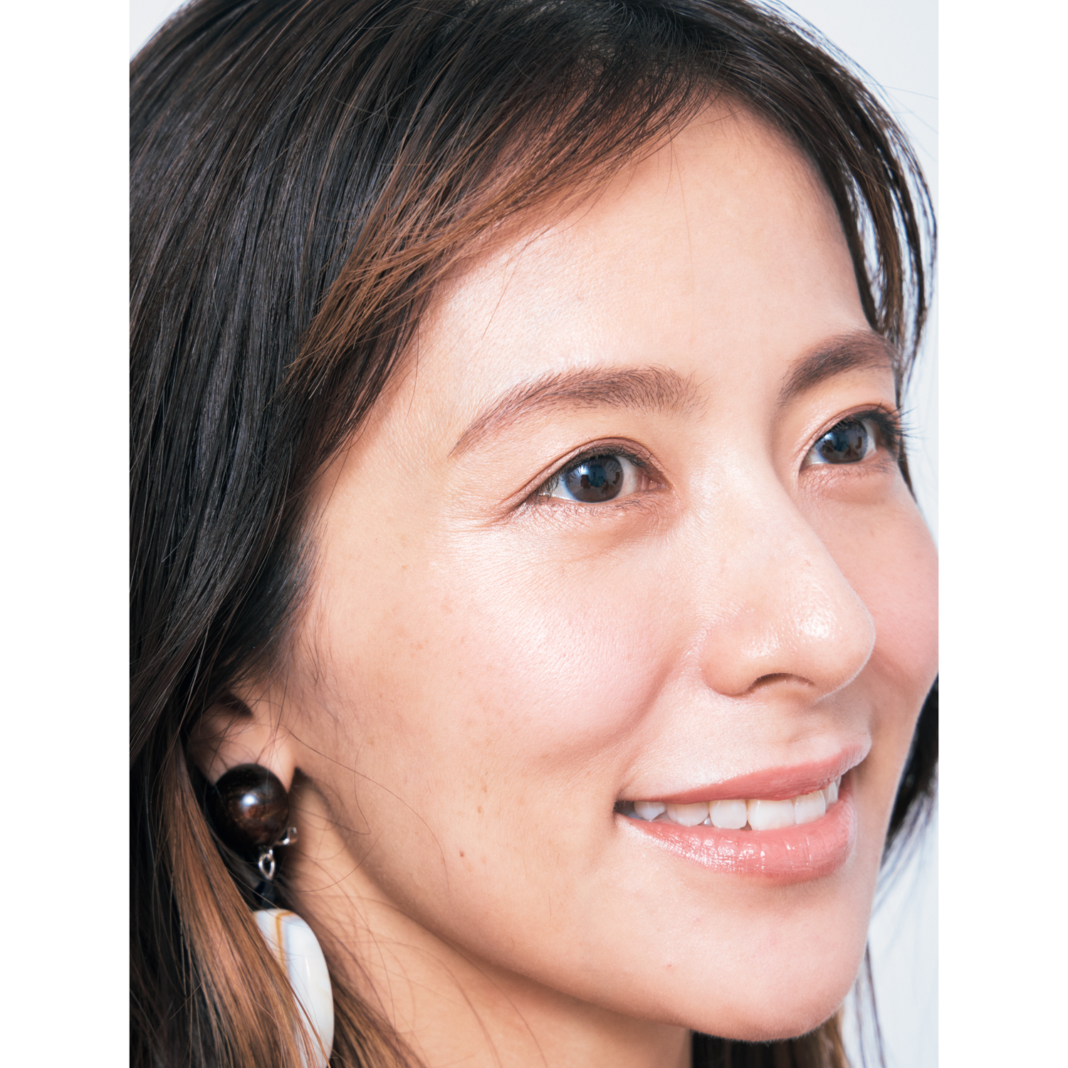 明るいベージュブラウン×ほわっとフォルムで優しげで若見えも叶うトレンド眉が完成。眉尻をあえてぼかして輪郭を曖昧に。印象を柔らかくして優しさは引き出すものの、甘すぎると若作りになってしまうので、主張しすぎない透け色アイテムを選んで。柔らかなアーチ状の透け眉で表情まで優しく。
