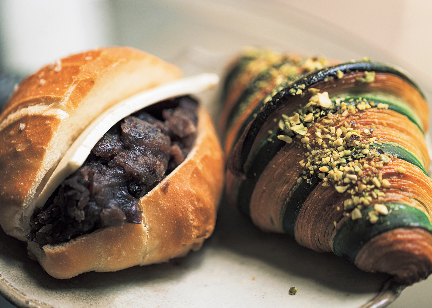 「卵や乳製品不使用。もともとヴィーガンの方には新たな美味しさを知っていただけますし、これをきっかけに興味をもたれる方も」あんバター¥400、ピスタチオクロワッサン¥510(ともにTe cor gentil)