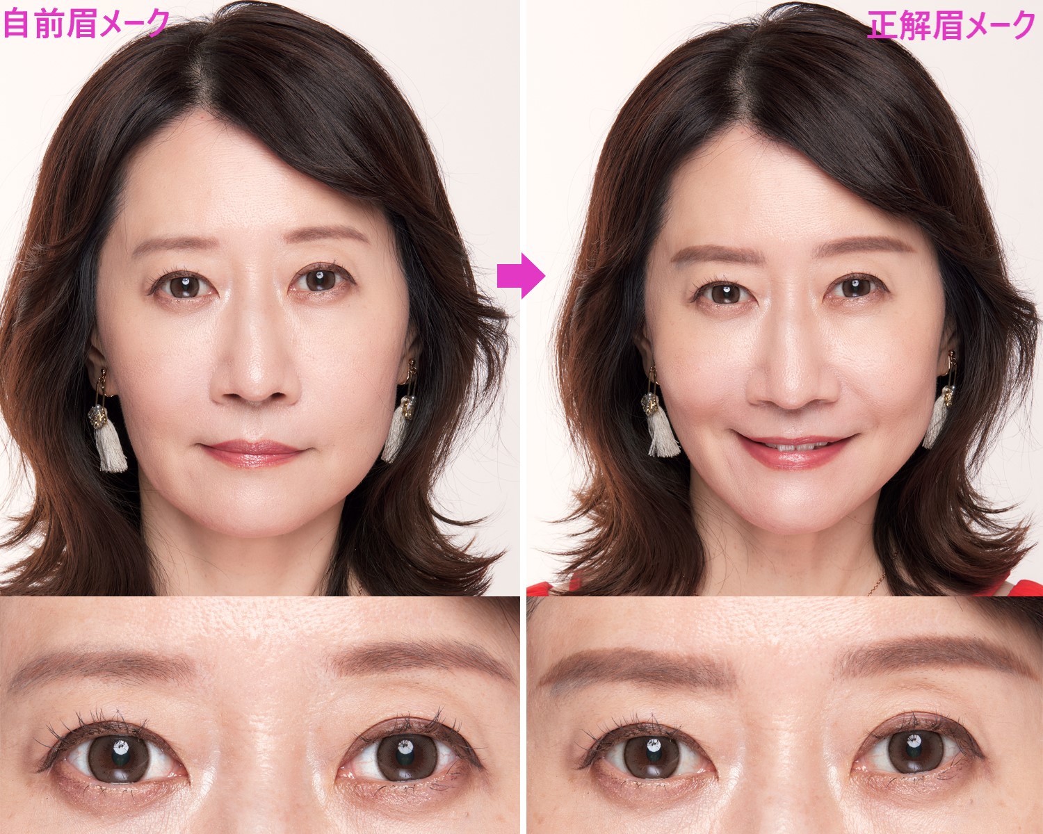 ▶のっぺり眉が威圧感!?49歳美女が【眉の描き方】を変えたら若返った!