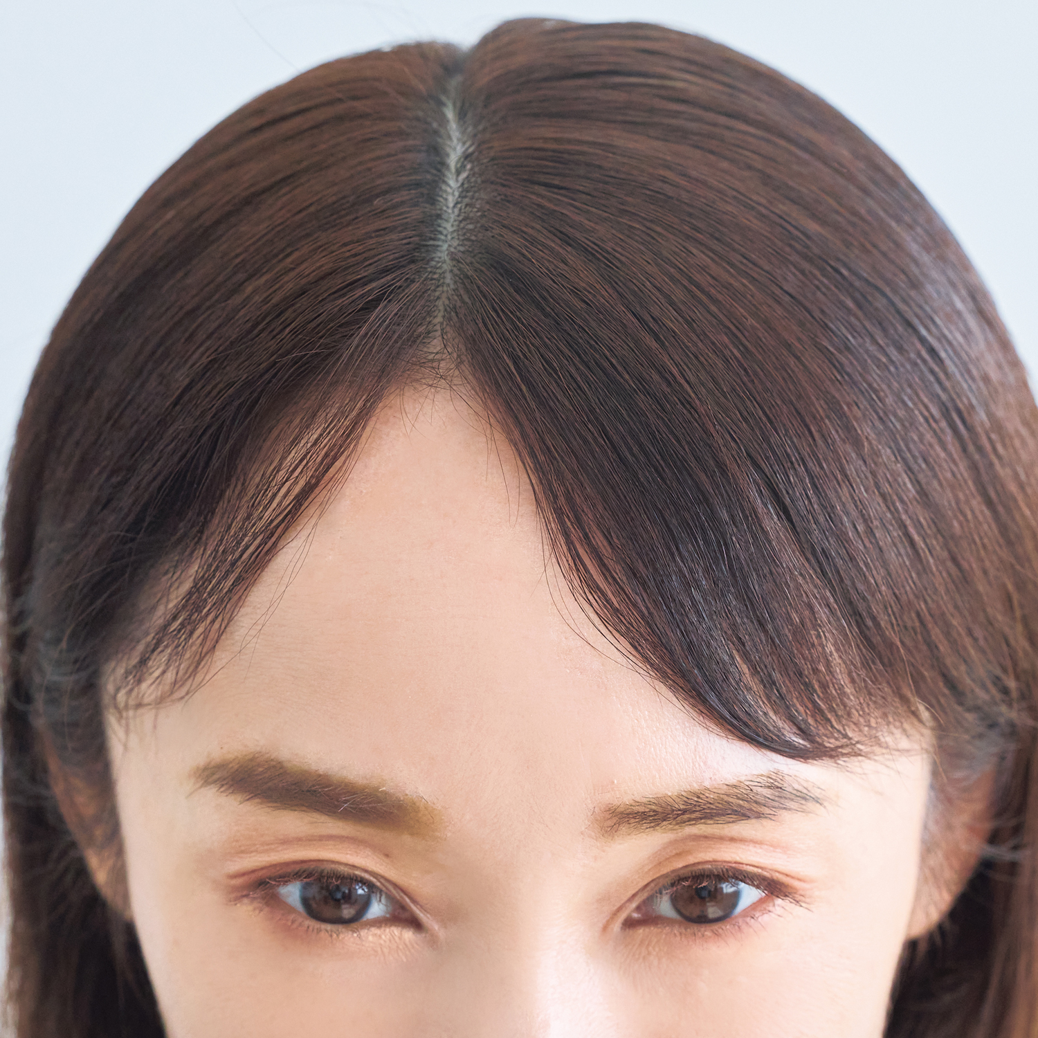 Before:加齢により髪がやせて根元の立ち上がりがなくなったことで、以前よりも分け目が目立ってしまいます。