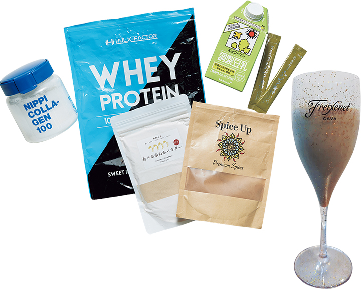 青汁、プロテイン、コラーゲン、米糠パウダー、シナモン、豆乳を朝食として摂取しています。日々の食事では摂り切れない必要な栄養素を一括チャージしています。