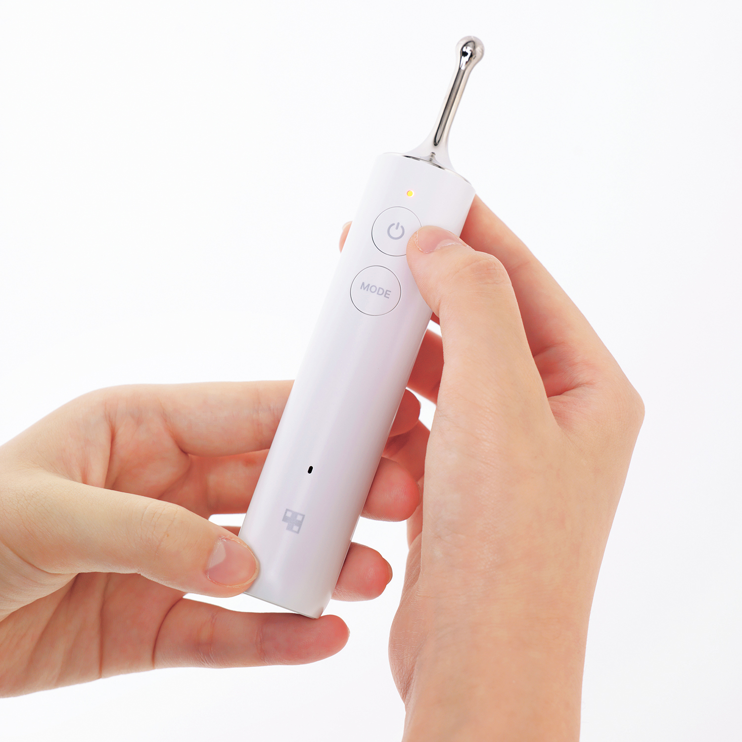 極小ボールタイプヘッドが手の届きにくい箇所までくまなくケア。肌奥にエネルギーを届けてコラーゲン生成を促進、美容成分の浸透も高めて肌弾力を回復。(メディキューブ)
