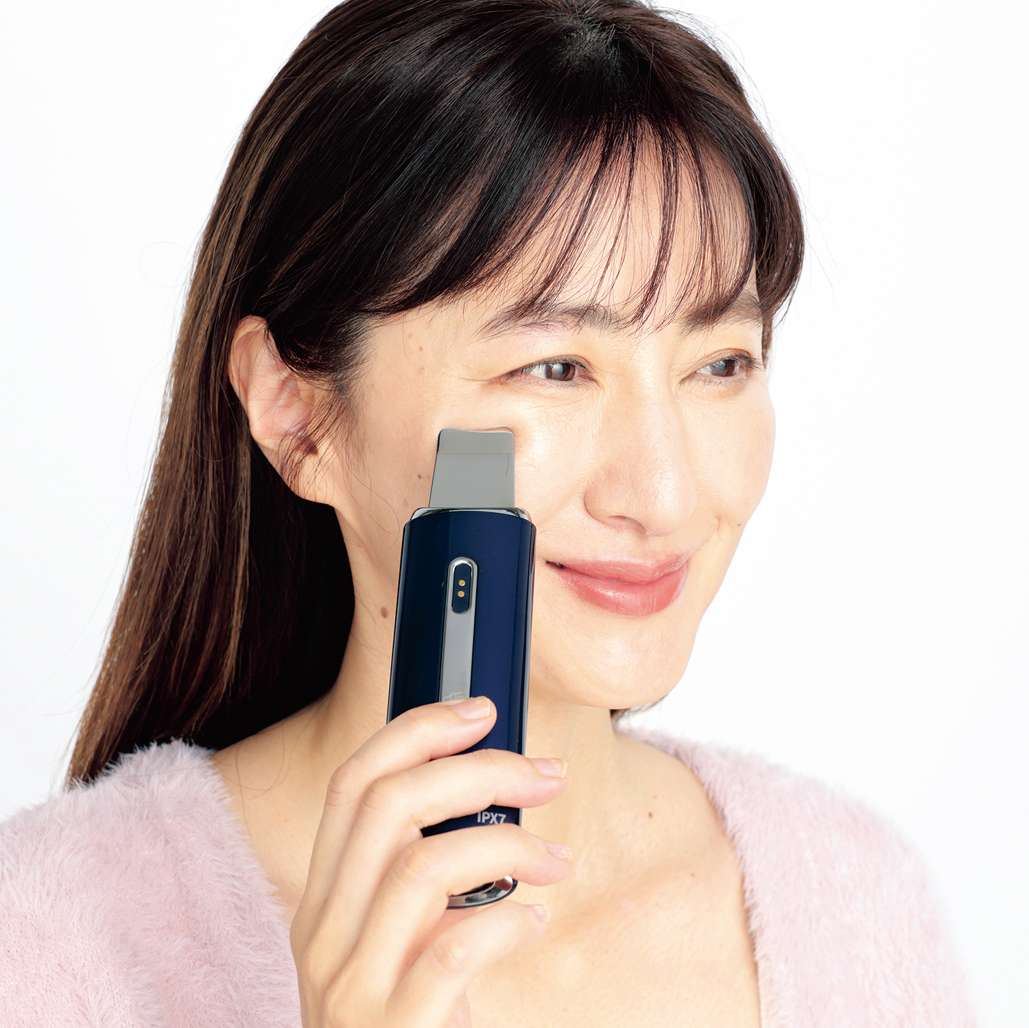 スクライバー面ではイオンと超音波による導入・導出が可能。洗顔では落としきれない汚れをオフしたり、コスメの美容成分浸透をサポートも。