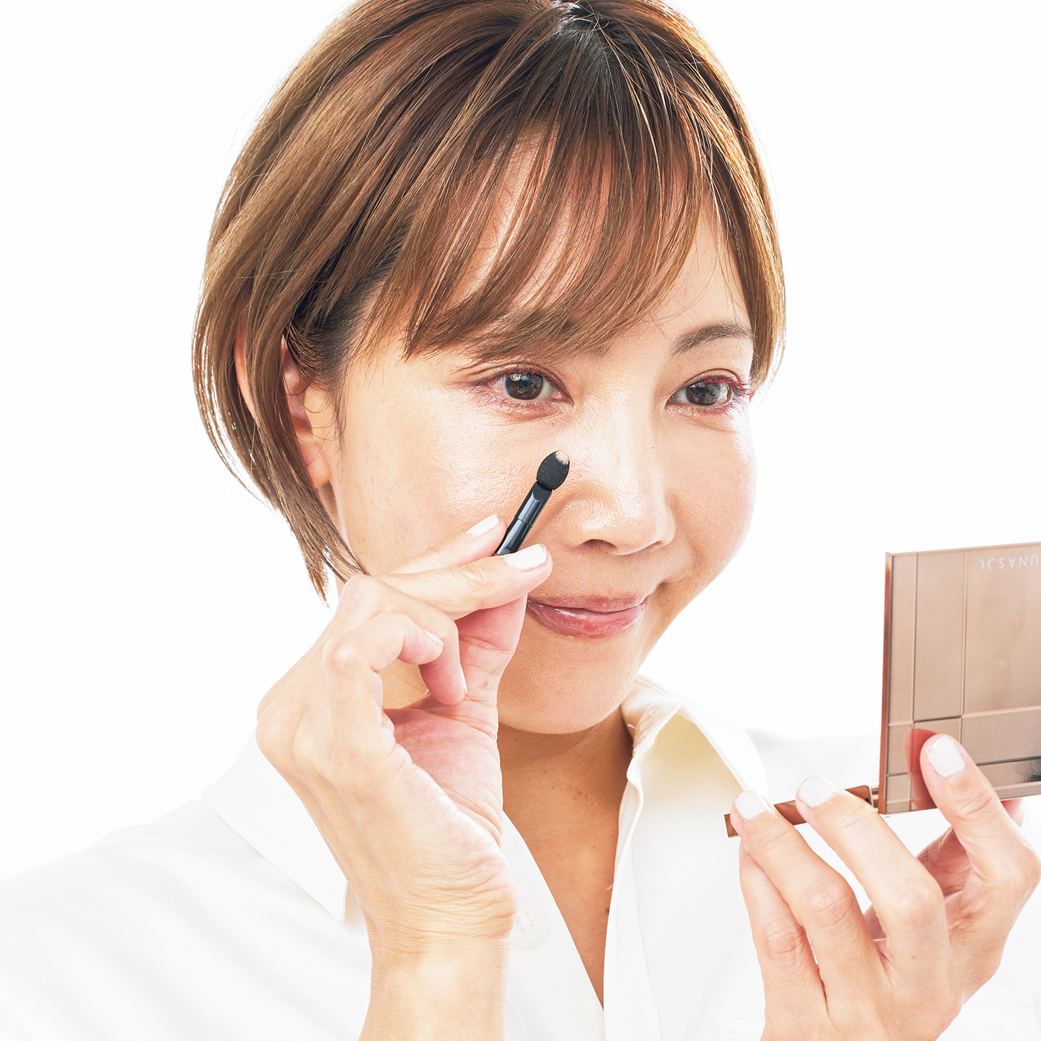 「宝塚時代、メークが上手な先輩から『地が命』と教えていただいたんです。30代までは目や眉に集中していましたが、40代になって先輩の言葉の意味を痛感しています。すっぴんが美しいのが一番。敏感肌用のスキンケアで肌をいたわりつつ、普段は肌に優しいBBクリームのみ。人前に出るときはほどよくツヤ感を足して、陰影でメリハリを出すメークを。最近はカラーマスカラを足すこともあります」