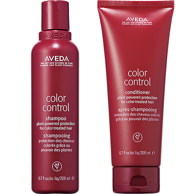 ココナッツ由来の洗浄成分でカラーキープ。アプリコットシードオイルがヘアに輝きを。左から:カラーコントロールシャンプー¥4,180、同コンディショナー各200ml ¥4,840 (アヴェダ)
