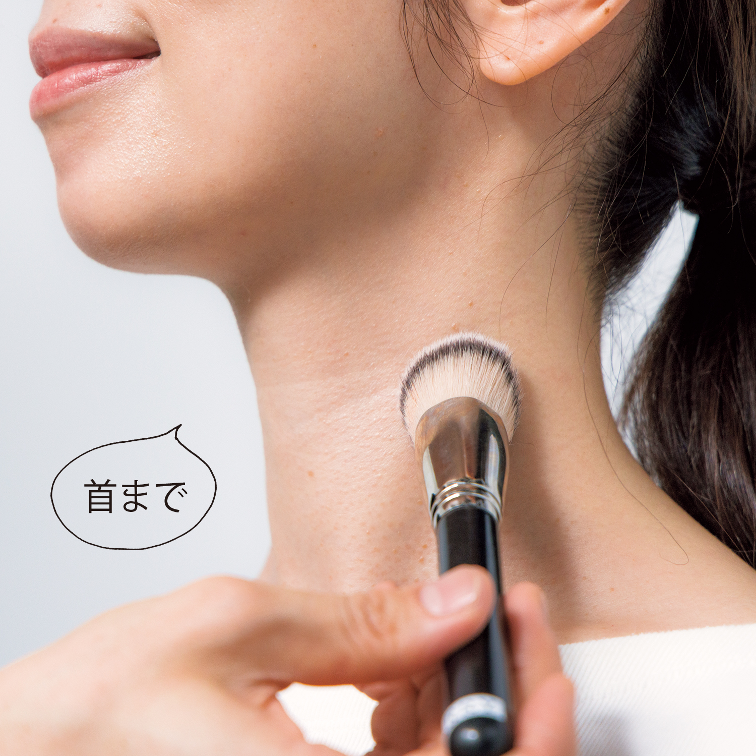 ファンデのみだと顔との境に線が出てしまいます。下地を首元までのばして。