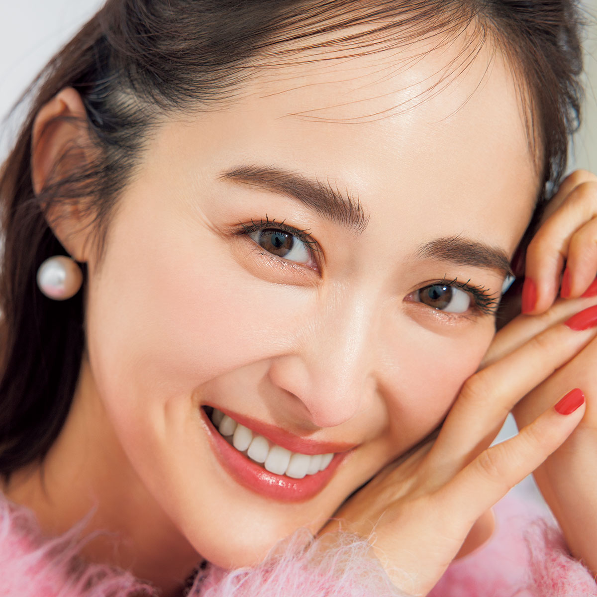 全体的にピンクみの多いメイクは、ぼやけやすかったり甘くなりすぎるので、アイライナーを入れて目元を締めたり、チークだけはベージュ系にしたりすると◎。開運のおでこ出しにカチューシャをするなら、前髪を少しだけ下ろすと今っぽさもキープ!メイクの緩急を意識するとうまくいきます。