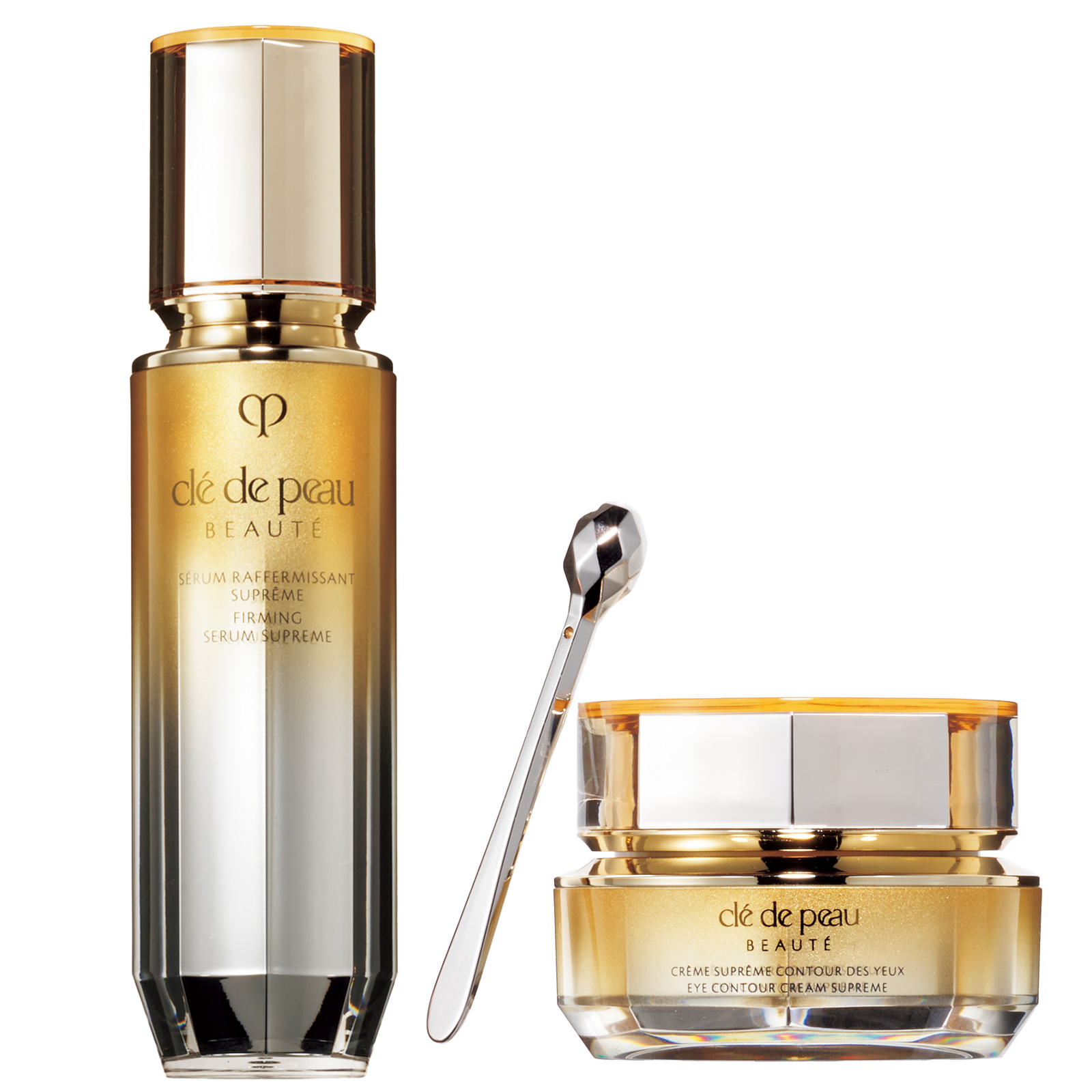 左から:[輪郭をグッと持ち上げるベスコス受賞の名品美容液] フェイスラインと肌表面を整えてハリのある印象へ。ローションの後に。セラムラフェルミサンSn 40g ¥36,300、[クマ、ハリ感、あらゆる悩みに応えるアイクリーム] ハリ不足や小ジワ、くすみなど目元の複合悩みに対応する高機能アイクリーム。スキンケアの最後に。クレームイユーS 15g ¥29,150 ※ 1/21発売(ともにクレ・ド・ポーボーテ)