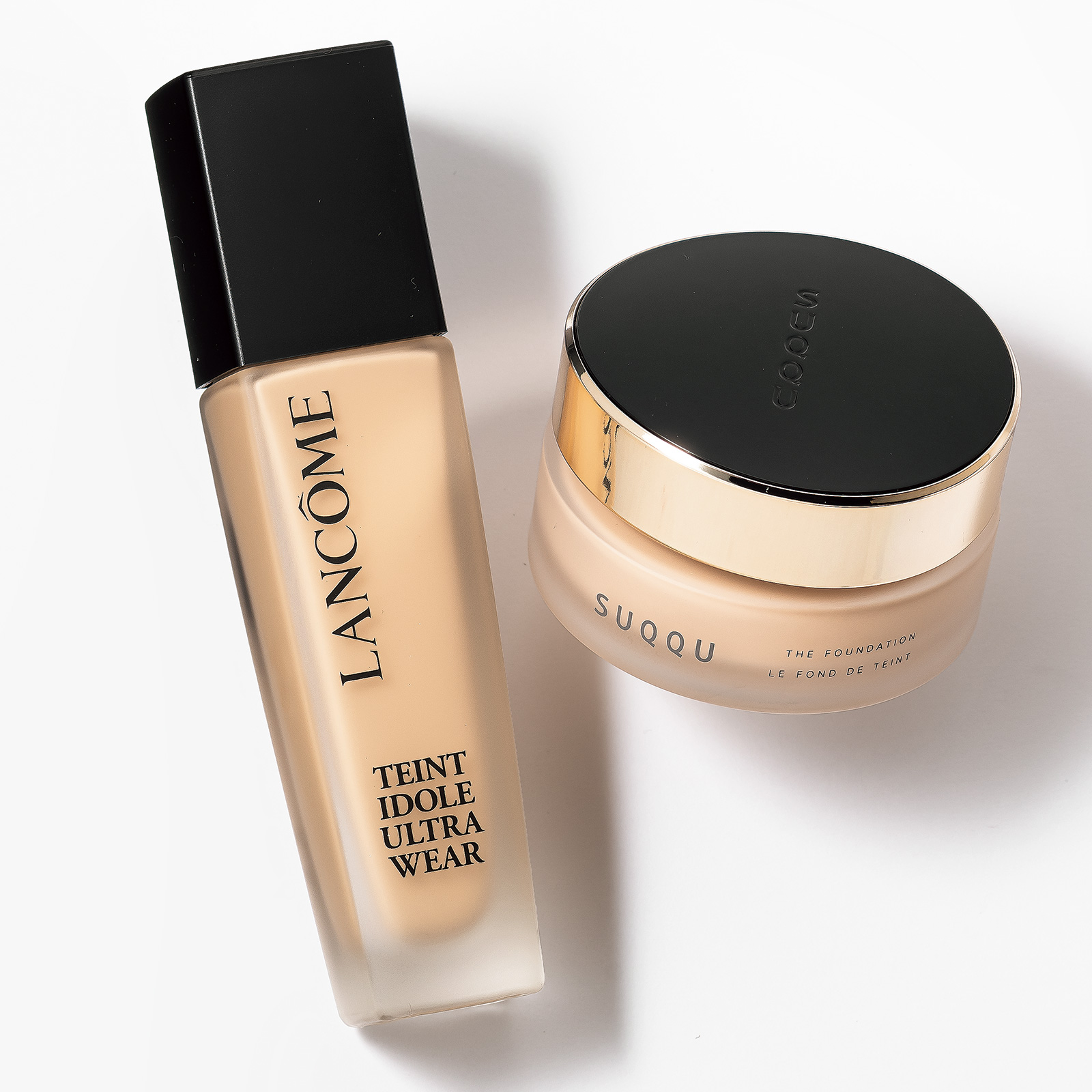 右:カバー力とツヤを両立。密着感も高く、美しい仕上がりが長時間持続。ザファンデーション全24色 30g ¥14,300 ※SPF、PA値は色番ごとに異なる。(SUQQU)