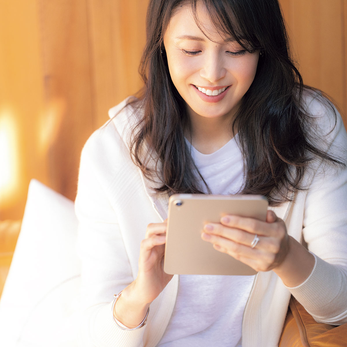 私は保湿する程度で特別なスキンケアはしていませんが、しっかり食べて栄養を補うことでツヤとふっくら感が増し、体を動かし引き締めていくと肌もキュッと引き締まって調子がいい。運動の発汗は、血流を巡らせ、ハリにも繋がり、程よい汗は美容液になっている気がします。血流が回せなかった日は自宅のトレッドミルで50分間歩いています。さらに月に1度はインディバにも行くようになりました。体の中から温めて、削げを感じたときは顔にもやってもらいます。今は、一連のこの流れが自分にとってのベストだと思っています。風邪もひかず体調もいいです。心身ともに健康だと優しい笑顔でいられますね。