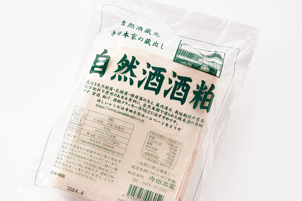 時間をかけて自然造りで醸した酒の酒粕は、ビタミン類に加えて各種有用菌・アミノ酸が豊富。自然酒酒粕(板粕)500g ¥432(寺田本家)