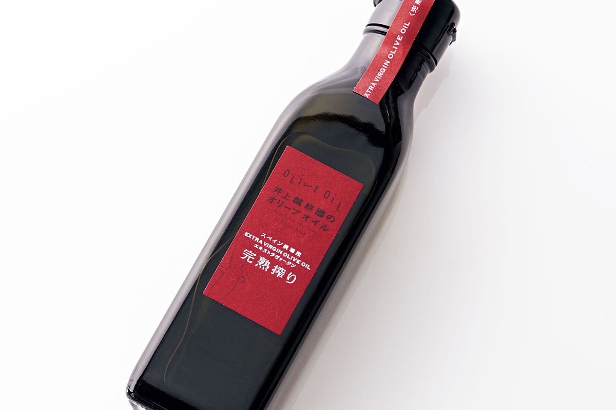 オレイン酸や抗酸化作用のあるポリフェノール、ビタミンEが豊富です。エキストラヴァージン完熟オリーブオイル180g ¥1,622(井上誠耕園)