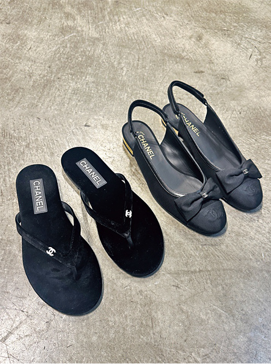 VERYにはさまる“ダイジェスト版”のカバーは同じくCHANELのツイードのセットアップ。セーラーカラーでカラーリングは“ネイビー”……!また、切れてしまったフル版の足元は、左のベロアのトングサンダル。ランウェイにも多くのルックの足元がこのサンダルでした。右のスリングバックはダイジェスト版の表紙にて着用。今季は“黒”の足元人気も続行の予感!