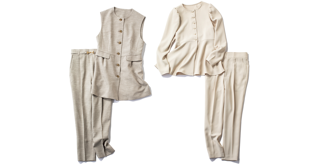 通勤服のカジュアル化が進み、仕事服と普段着の境目がシームレスになった今、卒入園・卒入学の服を〝その後も使える〟視点で選ぶのがママたちの鉄則!そこで、普段着ベースでも「ハレの日の特別感」が出せる優秀セットアップをご紹介します。