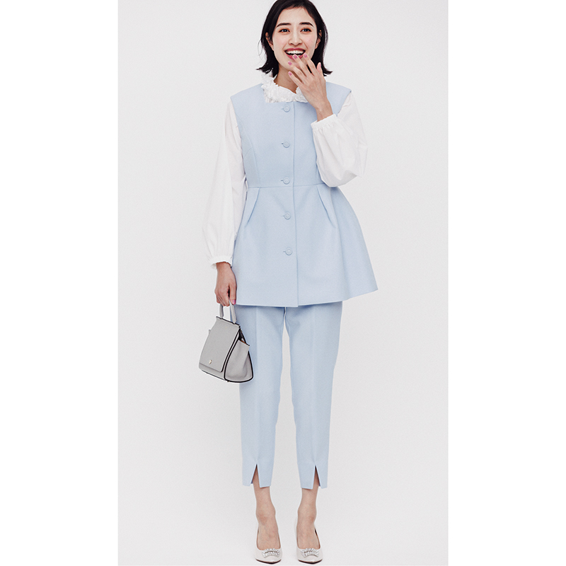 ジレとパンツのセットアップ¥29,700(セルフォード/セルフォード ルミネ新宿1店)ブラウス¥22,000(ユナイテッドアローズ/ユナイテッドアローズ 六本木ヒルズ店)バッグ¥58,300(オーエーディーニューヨーク/トゥモローランド)パンプス¥96,800(ペリーコ/アマン)