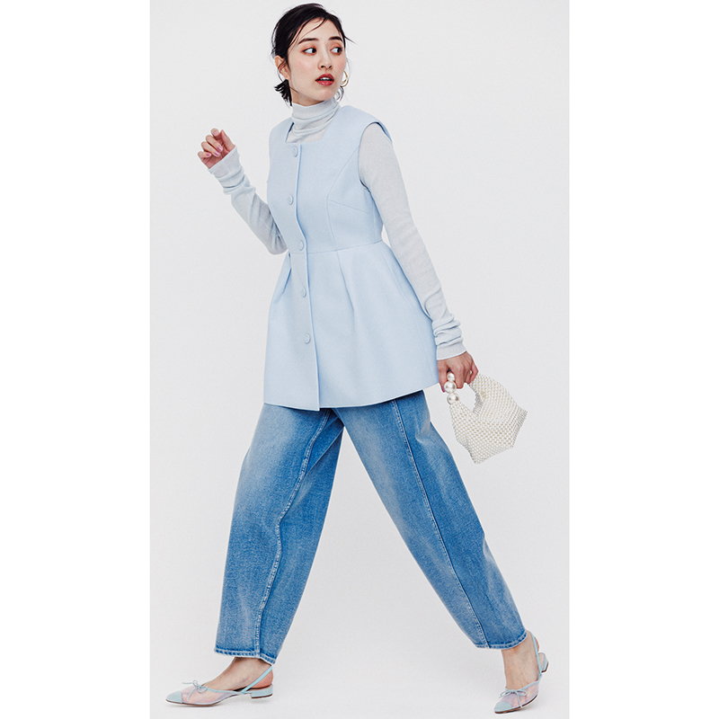 デニムに合うからカジュアルシーンも着回せてほどよく女らしく。きゅっとしたウエストマークでスタイルアップしてくれるのも魅力です。