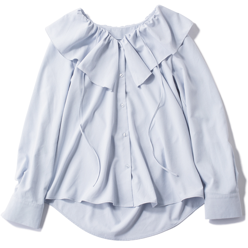 繊細な色出しでお値段以上! ラッフル衿は1枚で着ても、レイヤードで衿を見せても華やかなアクセントに。
