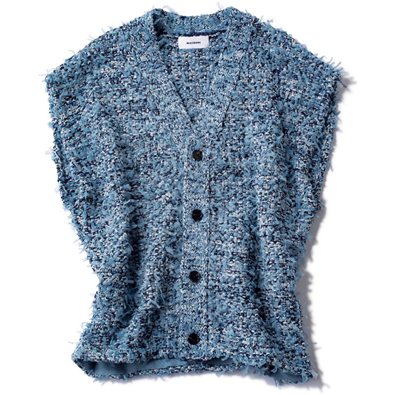 ツイードのような華やかな表情が楽しめる、ミックスニット素材。気負わず着られて上品な印象に。