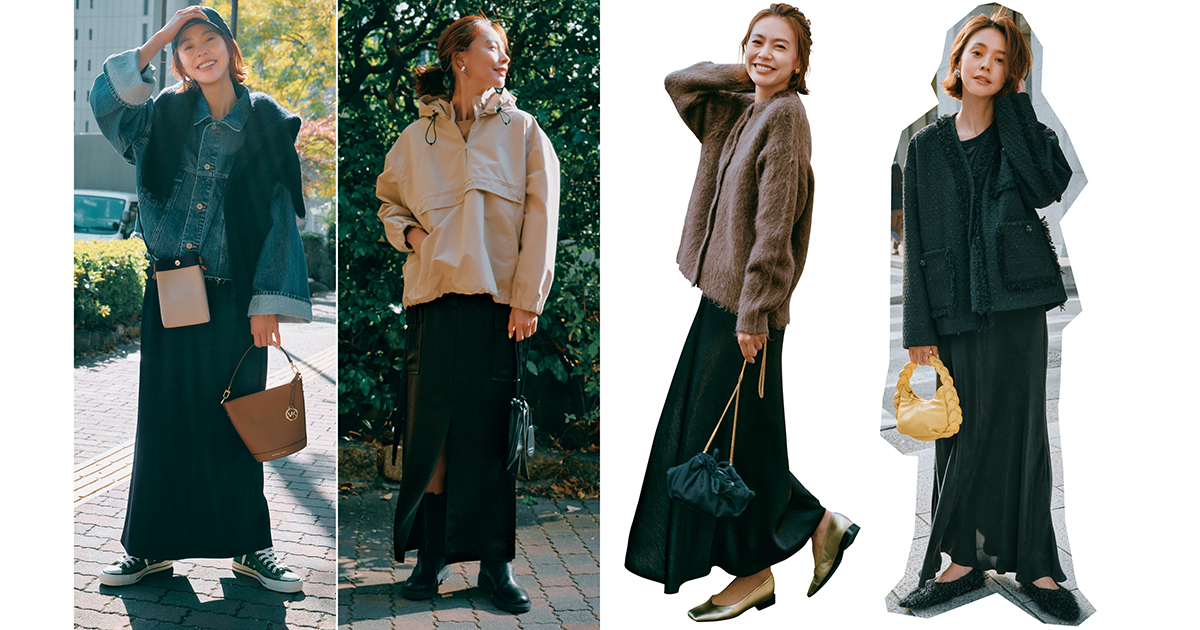 『黒のサテンスカート』が今年は“黒パンツより使える”説!【4選】