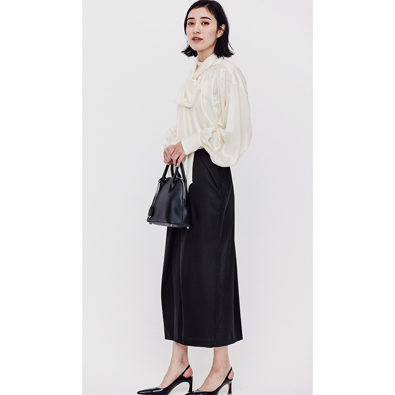 ボウタイを外せば、デイリーにも着回しやすい。ベージュ感覚で合わせやすく、ほどよくキレイに磨きをかけてくれる。