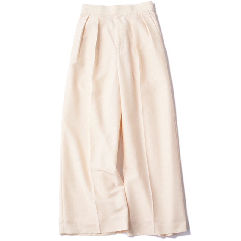 まろやかな淡色はワイドシルエットでも辛すぎないからコンサバさんも安心。シーンを選ばず品良く。