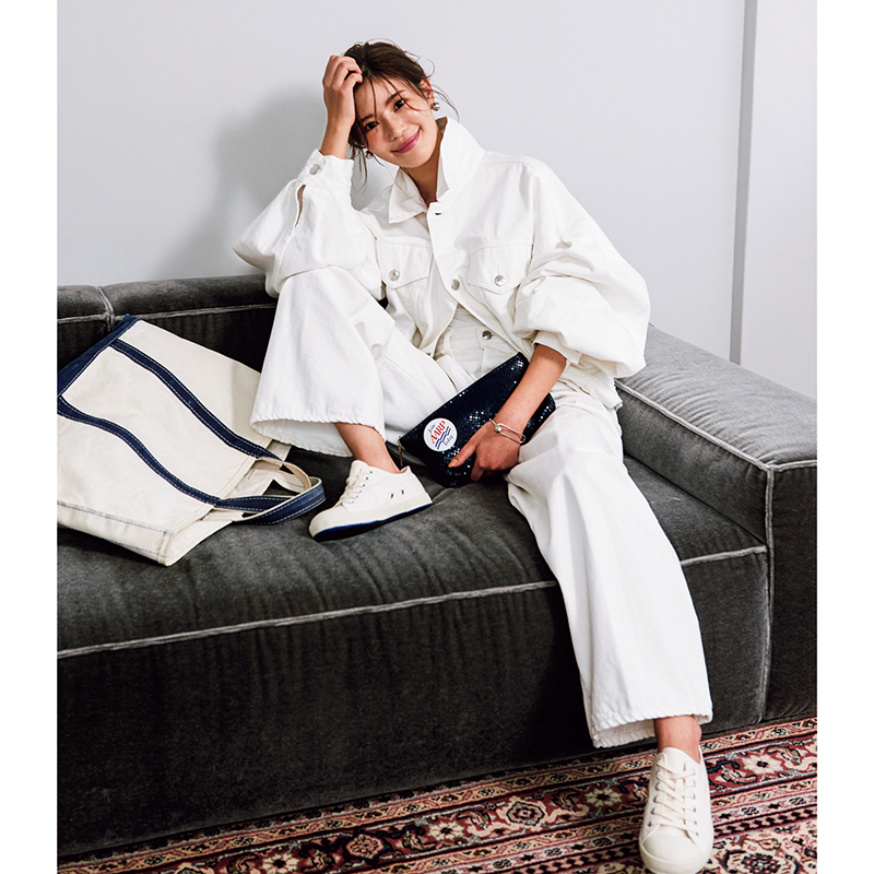 「週5はデニム」と話す業界きってのデニムラバー・人気スタイリスト樋口かほりさんが、感度高めの1本をご紹介。デニム×スニーカーというママにとってマンネリになってしまいがちな「制服コーデ」に一役を買うホワイトデニムをご紹介します!