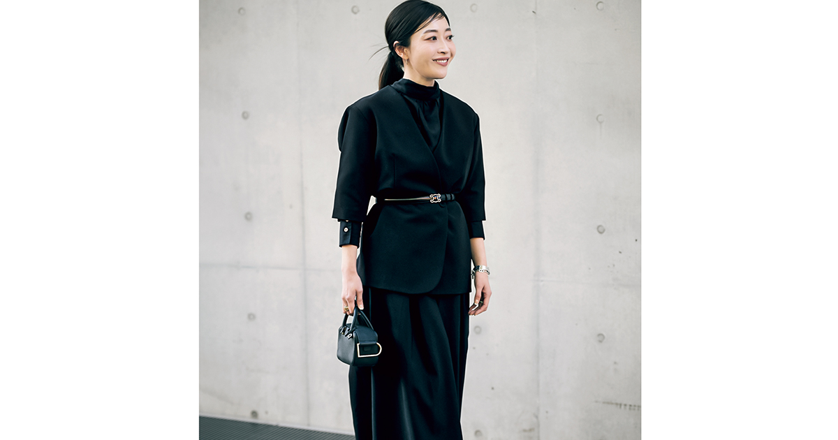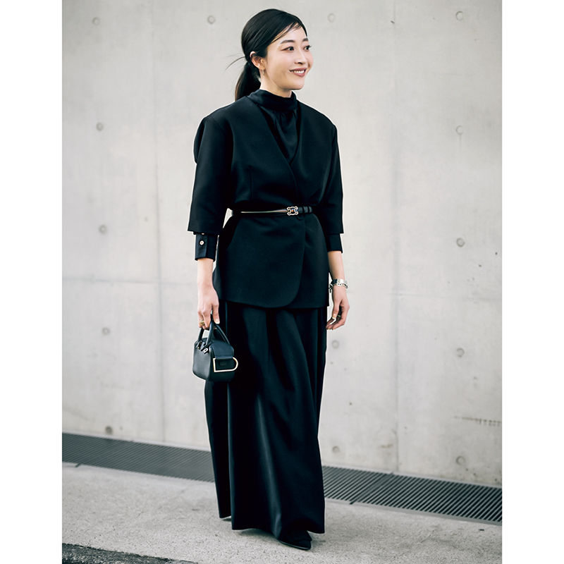 【入園オシャレ】モード派ママの“オール黒”でも地味見えしないコツって?