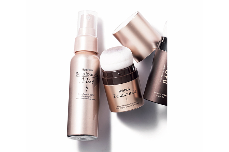 メークの油分をしっかり抑えてから使用。白髪補整だけでなく、薄毛の部分にも使えば小顔効果まで叶います。