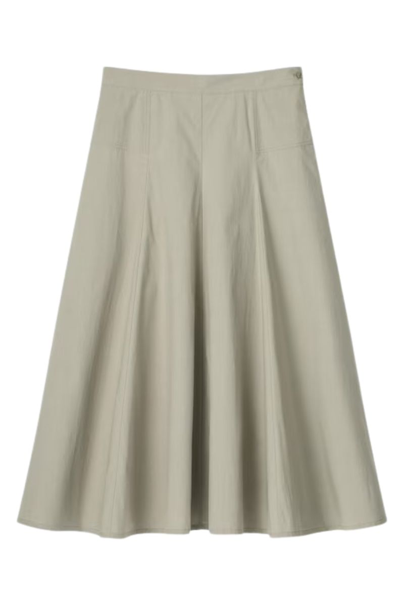 「砂埃や予期せぬ汚れへの対応も必要だからとアクティブにするのに抵抗があり、きれいめ感も兼ねておきたいという人の親子遠足にぴったりのコーデ。光沢のある高品質なコットン100%使用したロングスカートは、軽く動いたときのフレアの広がりもキレイで、つるっとした素材だから汚れもサッと払えてご機嫌に1日を過ごせそう。パーカは、こなれ感のあるゆったりとしたシルエットながら、短丈だからだぼっとせずバランスが取りやすいんです。1枚持っておくと、親子遠足だけでなく運動会や外でのレジャーに重宝しそう!」