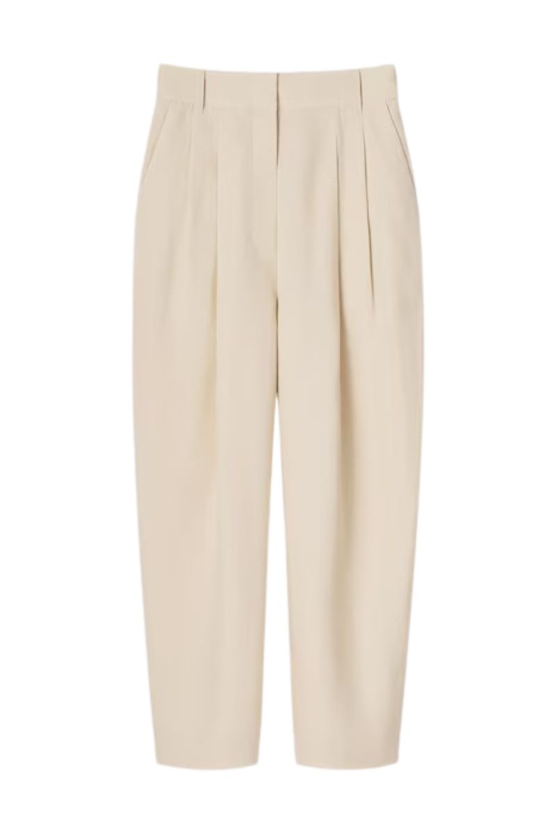 テンセルリネンジャケット¥9,990 リヨセルリネンタックテーパードパンツ¥9,990 ストレッチコットンフリルシャツ¥7,990(すべてコントワー・デ・コトニエ)その他・私物