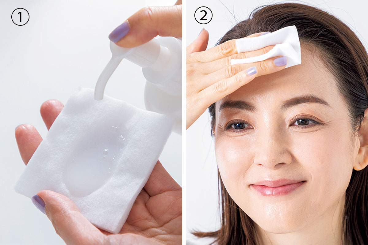 ①コットンに3~4プッシュ