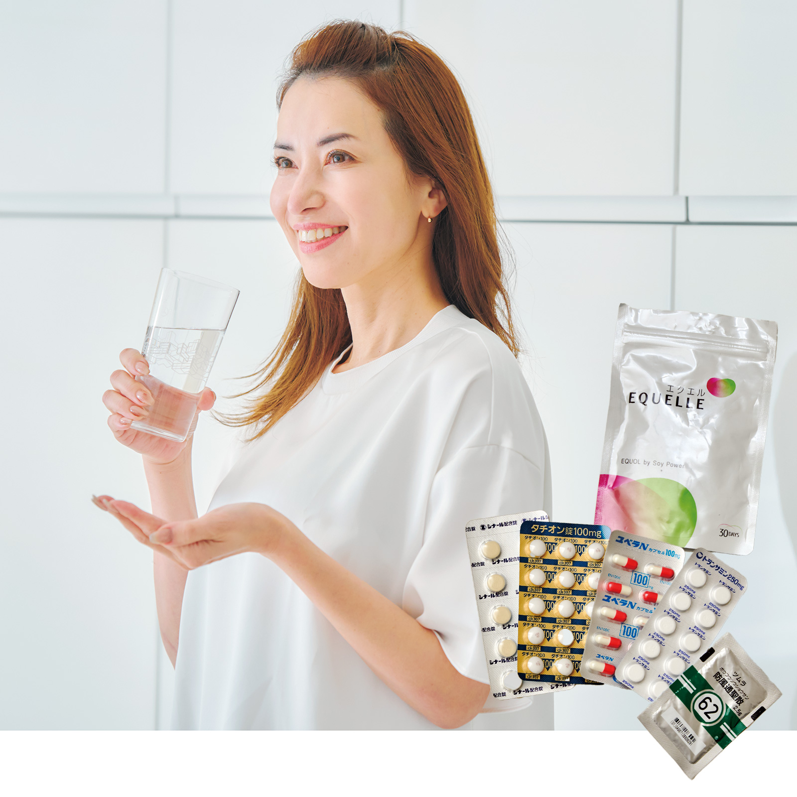 本格的に更年期が始まる前に、エクエルで対策を始めました。ホルモンもお肌も悩みは主人に相談しています。皮下脂肪やむくみにツムラの防風通聖散を。肝斑や肌荒れ、肌の調子を整えるためにトランサミン 250mg、ユベラN100mg、タチオン100mg、シナール配合錠を毎日飲んでいます。