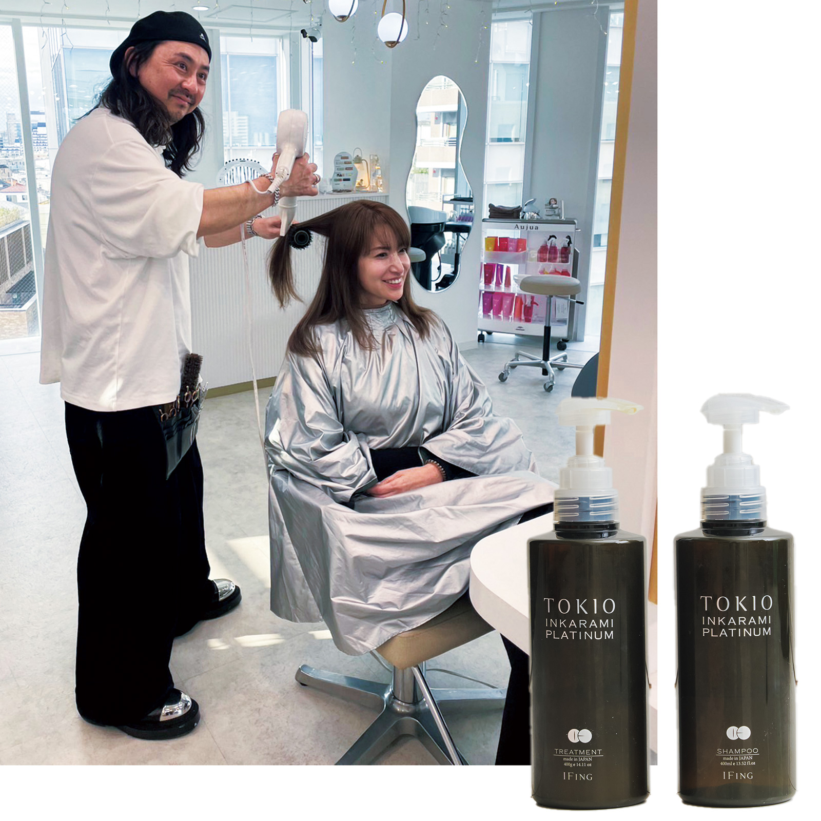 毛量が多く、40歳を過ぎて乾燥気味になったヘア悩みは東京出張中に通う代官山の「lemiie」代表・中島直樹さんにお任せしています。ストレートでも巻いても“サマ見え”するカットをリクエスト。ホームケアはTOKIO IE インカラミ プラチナムシャンプーとトリートメントを愛用。
