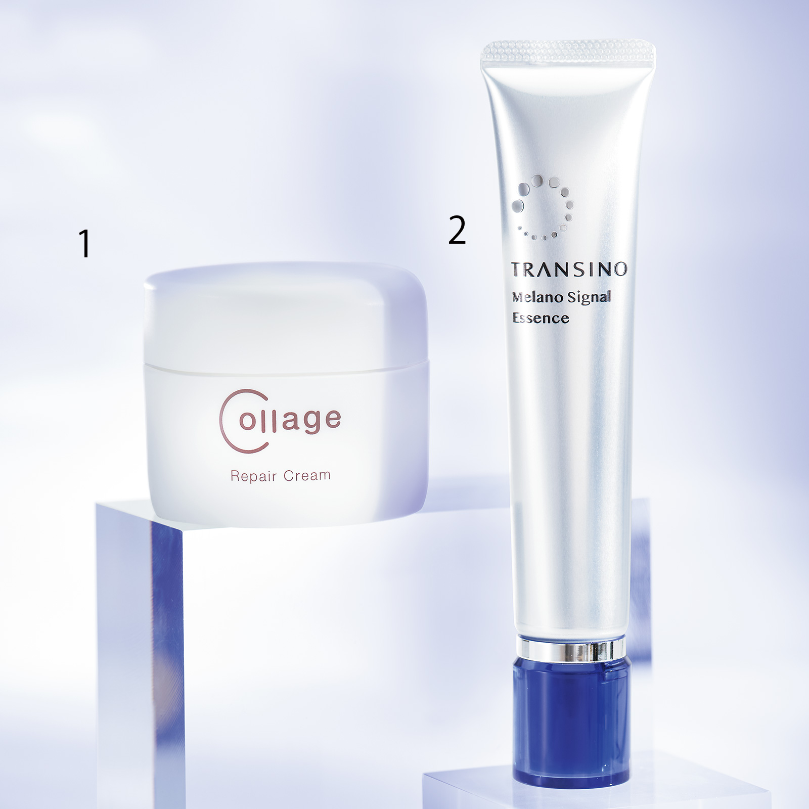 1:炎症物質の発生を抑制する抗プラスミン効果で肌荒れを予防。コラージュリペアクリーム[医薬部外品]40g ¥3,960(持田ヘルスケア)2:抗炎症効果と美白効果2つの機能でシミを兆し段階でブロックすることに期待。トランシーノ薬用メラノシグナルエッセンス[医薬部外品]30ml¥4,950〈編集部調べ〉(第一三共ヘルスケア)