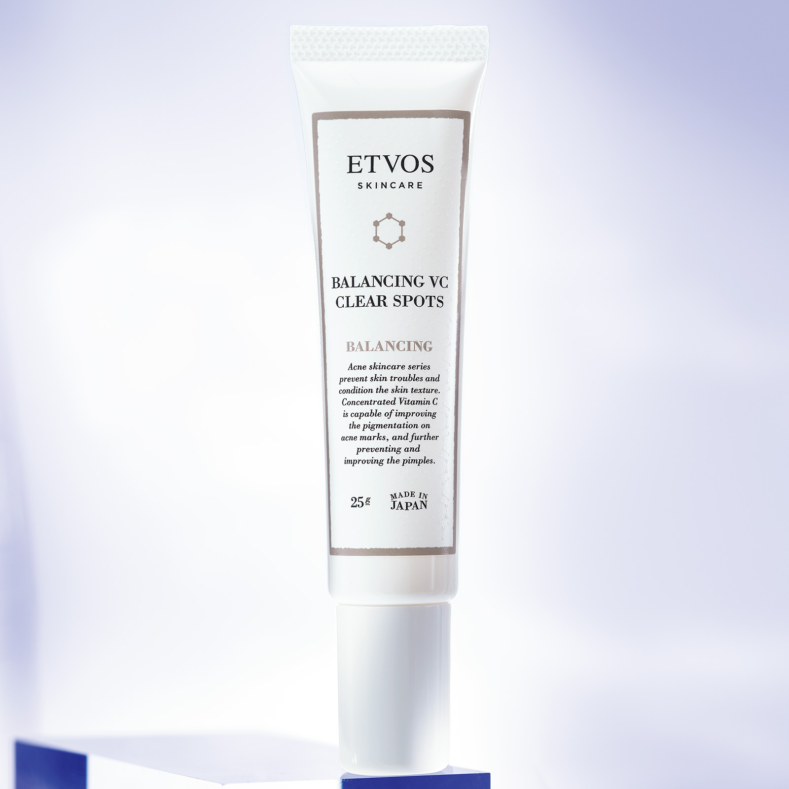 ニキビ菌に対する抗菌作用で大人ニキビを改善。過剰な皮脂を制御して毛穴の開きを解消し、クリアで滑らかな肌に整えます。バランシングVCクリアスポッツ 25g ¥2,970(エトヴォス)