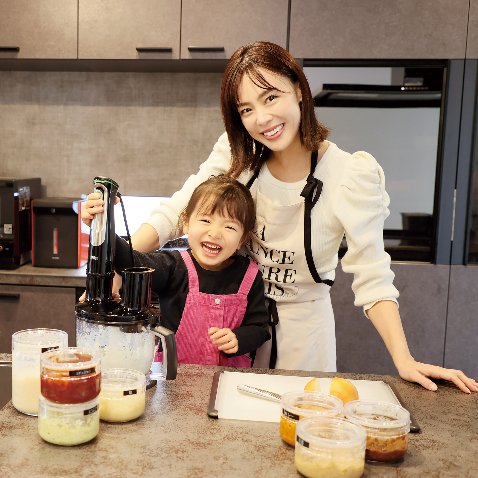 もはや趣味になっている麹作り。玉ねぎ麹をはじめ、主人の好きなニンニク麹、塩麹、生姜麹、甘酒麹、カレー麹など種類を増やしています。お肉や魚をつけこむだけで柔らかく風味も上がって、その上、時短になってとっても便利。キッチンで長女と一緒に作ることで楽しい食育の時間にも。