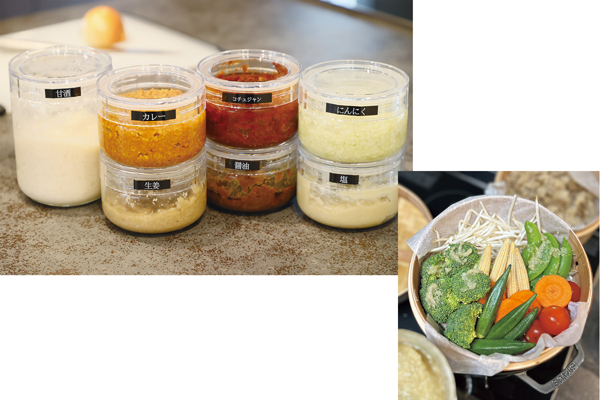 麹はせいろ蒸しの温野菜のタレにも