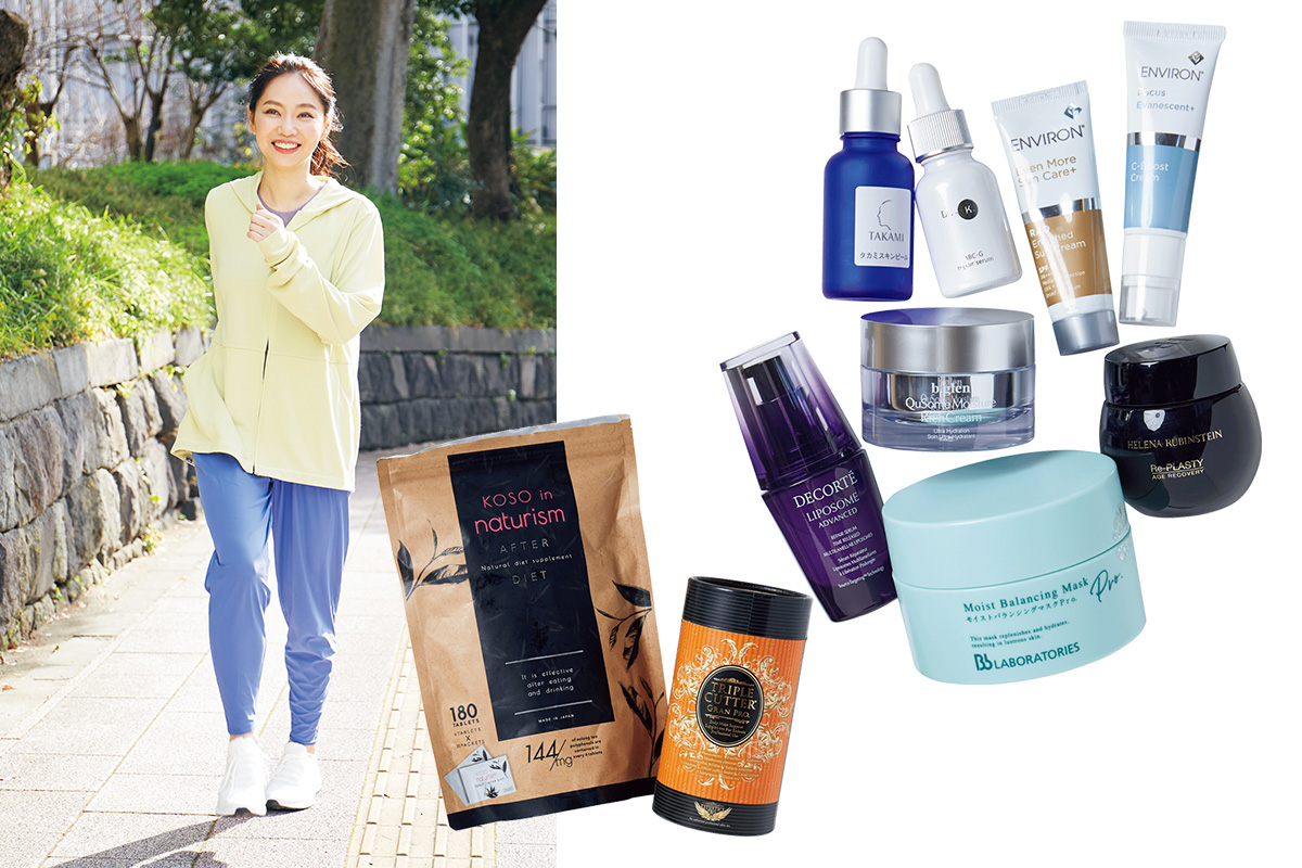 温度、湿度や天候、肌状態に合わせた最適なスキンケアをチョイス。エンビロンはスペシャルケア、乾燥対策にはリポソームなど。太りやすいので外食時はエステプロラボのトリプルカッターやナチュリズムのサプリで調整。