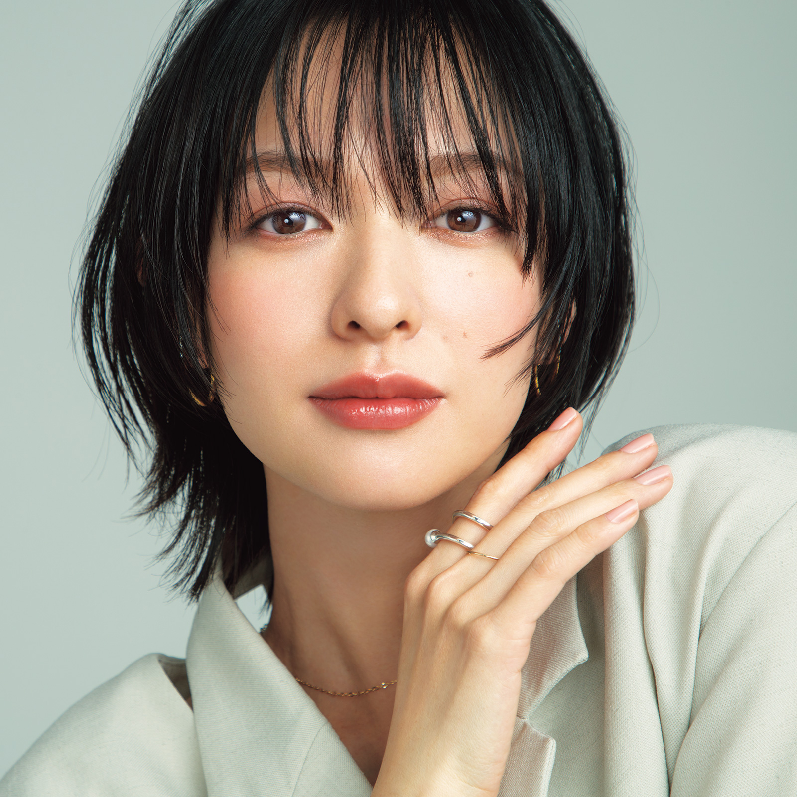 イヤーカフ[右耳上]¥13,200(アガット)イヤーカフ[両耳]¥22,000 リング[人差し指]¥11,000(ともにJouete)リング[中指]¥6,600(ステラハリウッド)ネックレス¥31,900(ヴイエーヴァンドーム青山/ヴイエーヴァンドーム青山有楽町マルイ店)シャツ(スタイリスト私物)