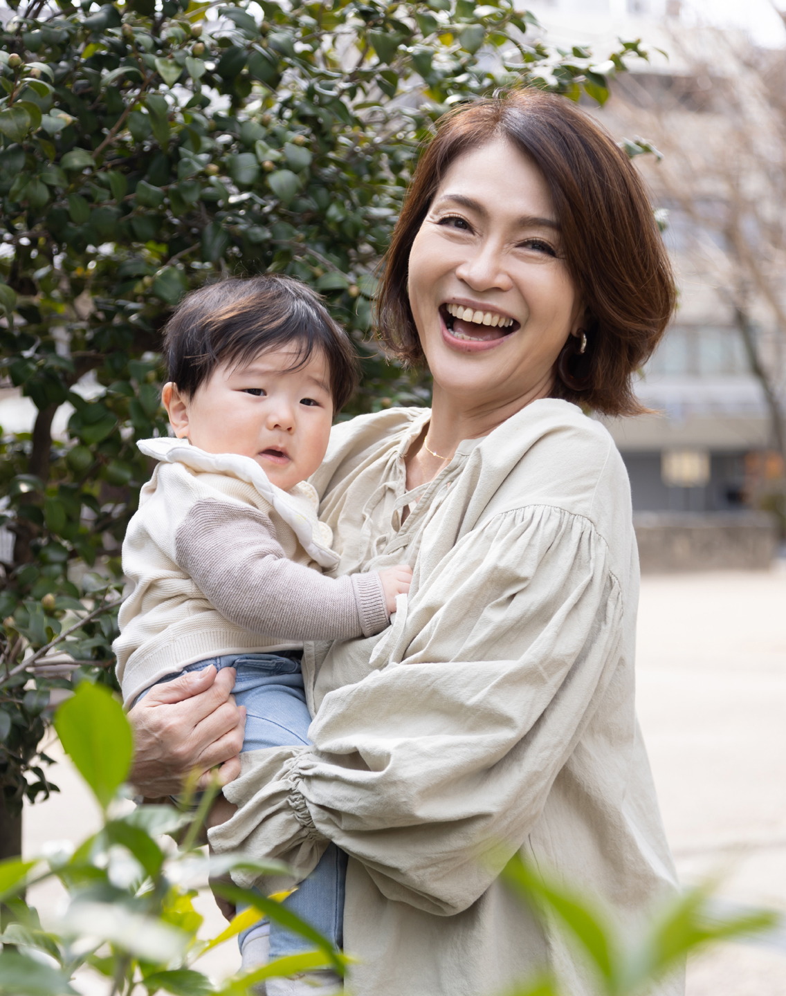 孫を連れてお散歩していると、必ずと言っていいほど自分の子供と間違えられるという本多さん。「照れくさいような気持ちになりますが、嬉しいですね。見た目のことだけじゃなく、元気なエネルギーがあふれているとよく言われます」。30代の子連れママたちと公園でおしゃべりしたり情報交換をしたり。世代の壁を作らないのも「ママ見えばあば」の秘訣かもしれません。
