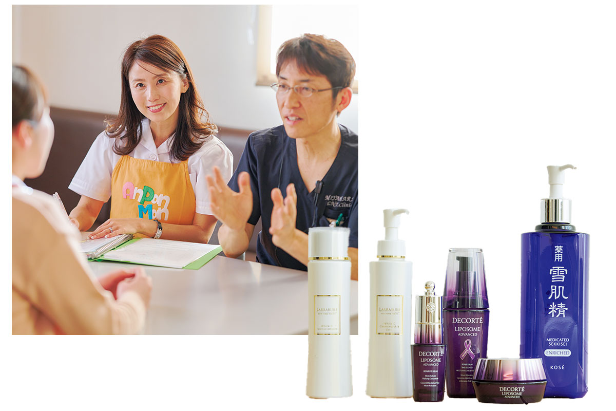 右/洗顔後、雪肌精をたっぷり。リポソームアドバンストリペアシリーズとララビュウは日によって使い分け。
