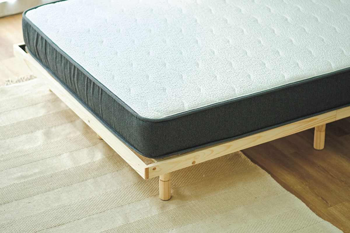 寝ている途中で目が覚めてしまうことが多かったのですが、振動が抑えられる硬めなマットレスに替えたら朝まで熟睡できるようになり、腰の負担も軽減されたよう。NELL マットレス¥75,000 〜(Morght)