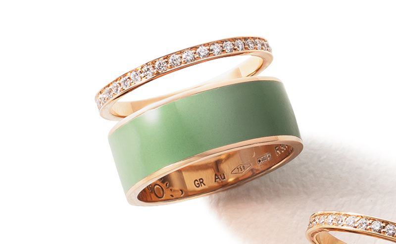 リング「ベルベル クロマティック」[18KPG×DIA×セージグリーンラッカー]¥586,300(レポシ/レポシ日本橋三越本店)