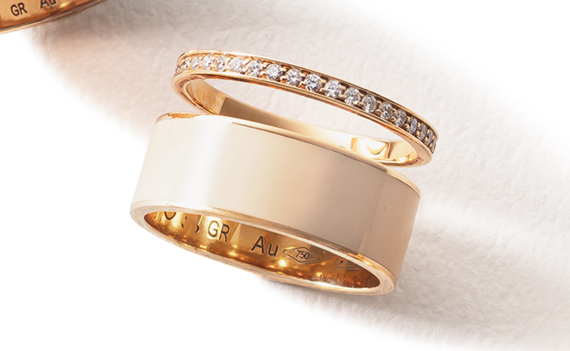 伝統的な民族タトゥーから着想を得た、ありそうでなかったダイヤとラッカーの直線的な組み合わせ。重ねづけしているようなフォルムも斬新。肌を綺麗に見せる優しいカラーを選んで、洒落た母オーラを身に纏いたい。